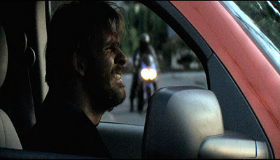 In fact, though the plot of RAGE may appear, at first, to borrow heavily from Spielberg’s own debut, DUEL, (hell, theres even a monologue discussing the merits of that movie in here), Witherspoon soon hurtles off in his own dark direction. Karma, moral choice, and fate, all drop by with a knife to take a swing at the viewer, yet the film never becomes po-faced, or wallows in pretense. Its a streamlined, hyper-tense joyride, that just happens to hold deeper subtext, should one wish to look. At heart, RAGE is a refreshingly simple Horror movie that goes right back to basics, and eschews all the bullshit that the mainstream has forced upon us poor bastards for so long. Theres no CG nonsense going down here, just a guy in jet black biker gear, taking no fucking prisoners.